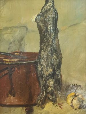 Jakubik István : Vadászles. A festmény zsűri által meghatározott ára: 120000 forint. Készpénz esetén a festmény ára: 96000 forint. Téma: vadászkép. A festmény anyaga: olajfestmény/farost. Az ár egy választható kerettel együtt értendő. A festmény mérete: 30 x 40 cm. Készpénz esetén postai utánvéttel, csomagban is elküldhetjük a festményt. A festményt a művész 2024-ben festette.