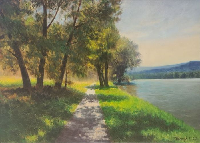 Faragó Imre : A Duna partján ültem. A festmény zsűri által meghatározott ára: 115000 forint. Készpénz esetén a festmény ára: 92000 forint, és postai utánvéttel, csomagban is elküldhetjük a festményt. Téma: tájkép. A festmény anyaga: feszített vászon/olajfestmény. Az ár egy választható kerettel együtt értendő. A festmény mérete keret nélkül 50 x 70 cm. A festményt a művész 2025-ben festette.