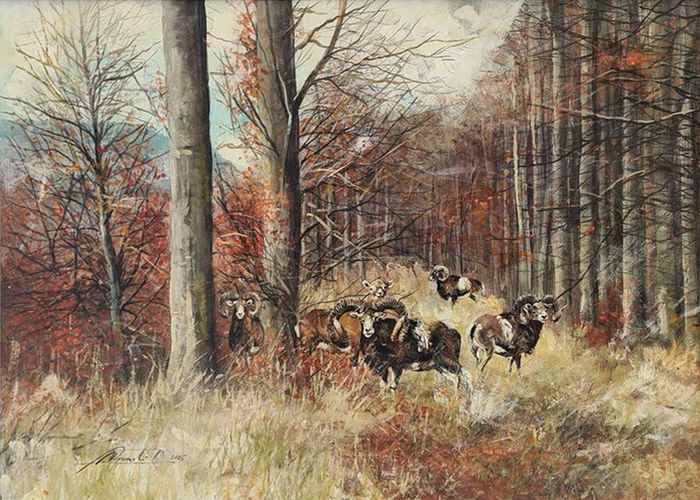 Udvarnoki Péter : Muflonok. Az alkotás zsűri által meghatározott ára 350000 forint, készpénz esetén 280000 forint. Az ár egy választható kerettel együtt értendő. A festmény mérete 50 x 70 cm, anyaga olajfestmény/farost. Téma: vadászfestmény. Megvásárolható 20 havi kamatmentes részletre is. Postai utánvéttel, csomagban is elküldhetjük a festményt.
