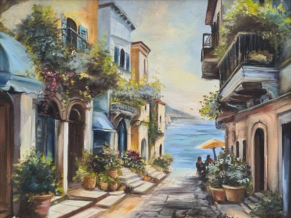 Anyaga olajfestmény/kasírozott vászon, mérete 30 x 40 cm.