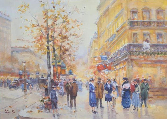 Szécsényi Attila : Belvárosi séta. Az alkotás zsűri által meghatározott ára 60000 forint. készpénz esetén 48000 forint. Anyaga olajfestmény/kasírozott vászon, mérete 30 x 20 cm. Téma: városkép. Az ár egy tetszőlegesen kiválasztott kerettel együtt értendő. Postai utánvéttel, csomagban is elküldhetjük a festményt. A festményt a művész 2025-ben festette.